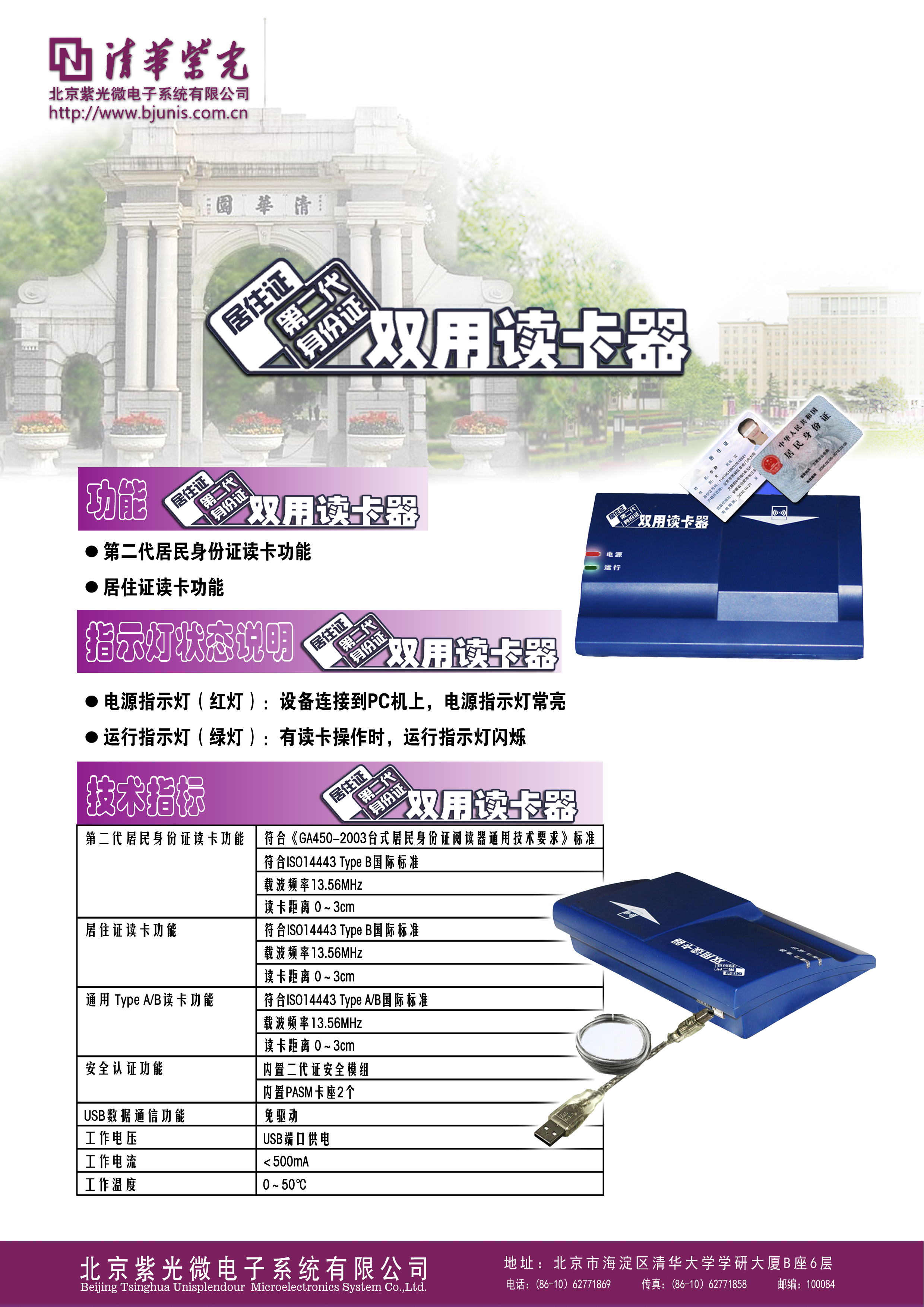 第二代身份证/居住证双用读卡器