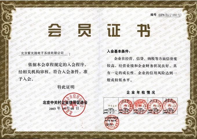紫光微电子于2003年9月被接纳为北京中关村企业信用促进会会员。